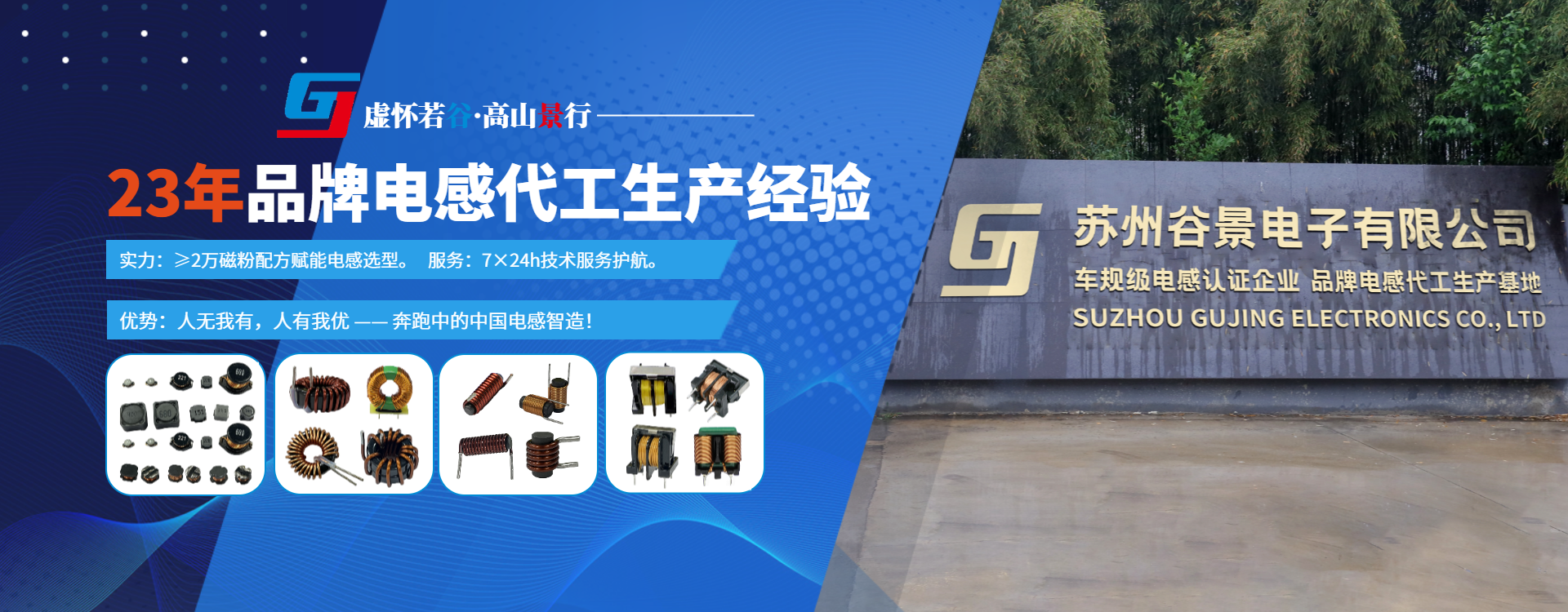 蘇州谷景電子有限公司是一家擁有23年以上國(guó)外品牌電感代工經(jīng)驗(yàn)的專(zhuān)業(yè)電感廠(chǎng)家,秉承1+1(即業(yè)務(wù)+技術(shù))理念服務(wù)客戶(hù)。主要電感類(lèi)型有:共模電感系列、貼片電感系列、工字電感系列、磁環(huán)電感系列、色環(huán)電感系列、棒型電感系列等。谷景工廠(chǎng)占地面積20畝,擁有在職員工365名,專(zhuān)業(yè)技術(shù)人員100多人,工廠(chǎng)通過(guò)了IATF16949車(chē)規(guī)級(jí)認(rèn)證以及ISO9001體系認(rèn)證,所有產(chǎn)品均按照國(guó)標(biāo)GB/T14860-2012,GB/t14006-1997及電子工業(yè)行業(yè)標(biāo)準(zhǔn)(SJ)等技術(shù)標(biāo)準(zhǔn)進(jìn)行研發(fā)、設(shè)計(jì)和制造。公司憑著專(zhuān)業(yè)、強(qiáng)大的生產(chǎn)體系,點(diǎn)對(duì)點(diǎn)的銷(xiāo)售及服務(wù)模式,自主銷(xiāo)售模塊年銷(xiāo)售額8000多萬(wàn)。谷景電子專(zhuān)注磁性粉末配方研究,擁有粉末實(shí)驗(yàn)室,并與國(guó)內(nèi)11家知名磁芯廠(chǎng)家建立合作。利用不同粉末材料特性,結(jié)合谷景多年品牌代工生產(chǎn)工藝,匹配不同使用環(huán)境下所需要的電感產(chǎn)品。谷景電子主要特點(diǎn)以方案為主導(dǎo),谷景電感的生產(chǎn)注重客戶(hù)案子的設(shè)計(jì)方案、芯片選型方案以及元器件應(yīng)用方案。旨在建設(shè)完善的電感生產(chǎn)體系和電感應(yīng)用體